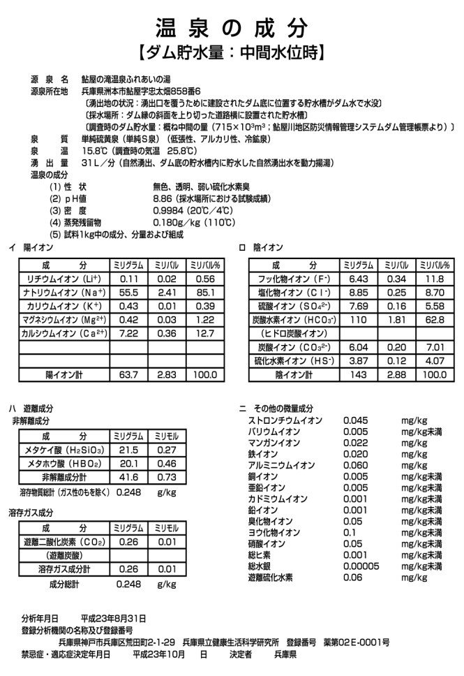 - この温泉を公共の浴用に供しようとする方は、有償無償にかかわらず、兵庫県知事の温泉利用許可が必要です。